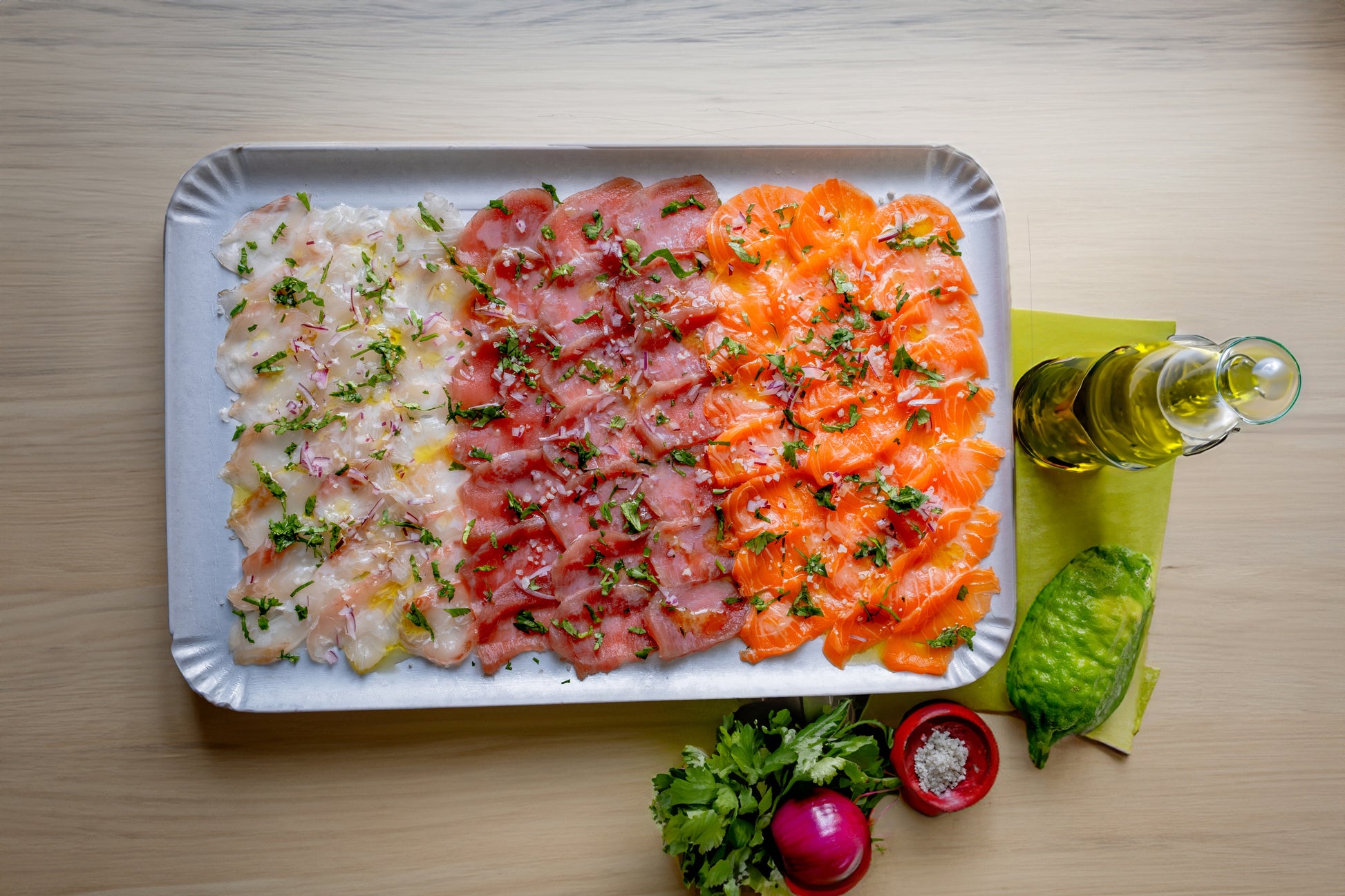 Carpaccio de Saumon, Thon et Dorade (5 à 7 personnes)
